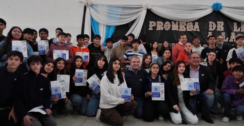 Tras tomar la jura a los alumnos, el vicegobernador resaltó el compromiso «que quienes hicieron la promesa asumen como ciudadanos de la Argentina de acuerdo al texto fundamental que organiza la vida institucional del país».