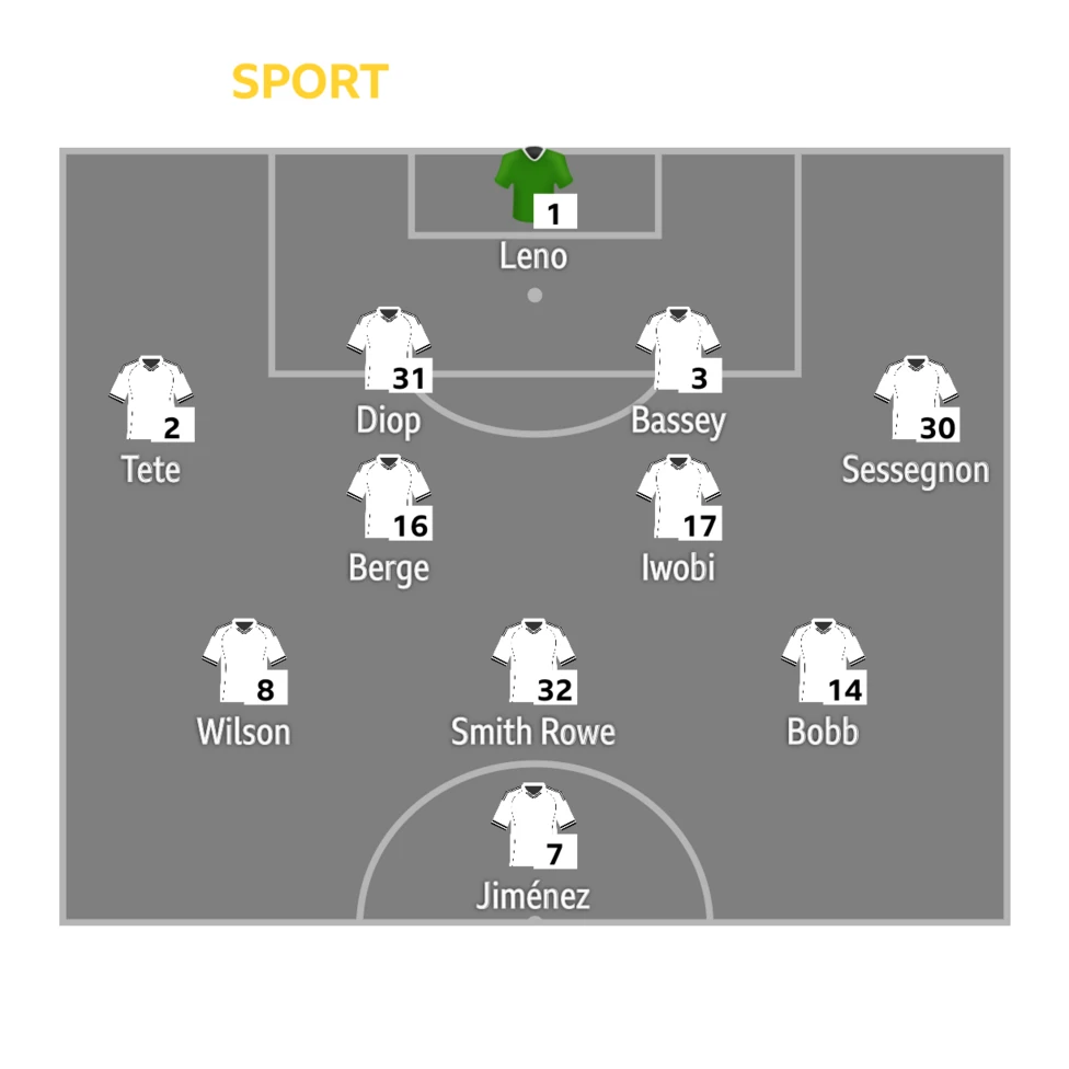 Fulham XI: Leno, Sessegnon, Bassey, Diop, Tete, Berge, Iwobi, Bobb, Smith Rowe, Wilson, Jiménez.